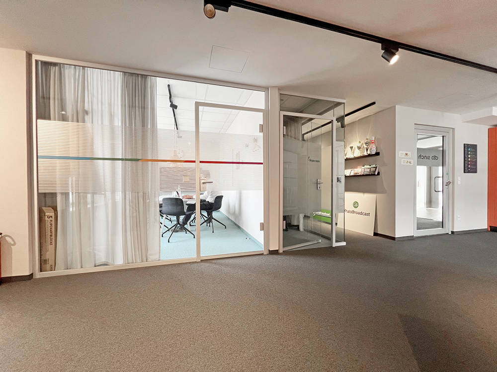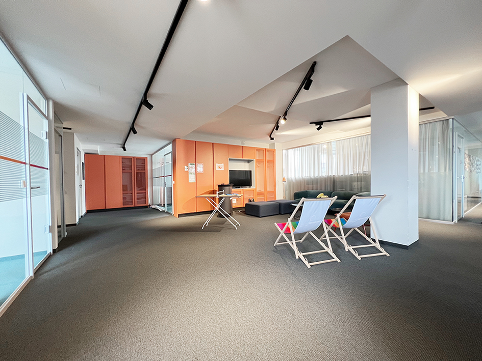 Das Büro ist nicht nur mit einer effizienten Klimatisierung und Belüftungsanlage für ganzjährigen Komfort ausgestattet, sondern bietet auch eine flexible Raumgestaltung, die sowohl Großraumbüros als auch kleinere, private Büros umfasst. Ein Meetingraum steht für Besprechungen, Präsentationen oder Workshops zur Verfügung und unterstützt eine dynamische Arbeitskultur.