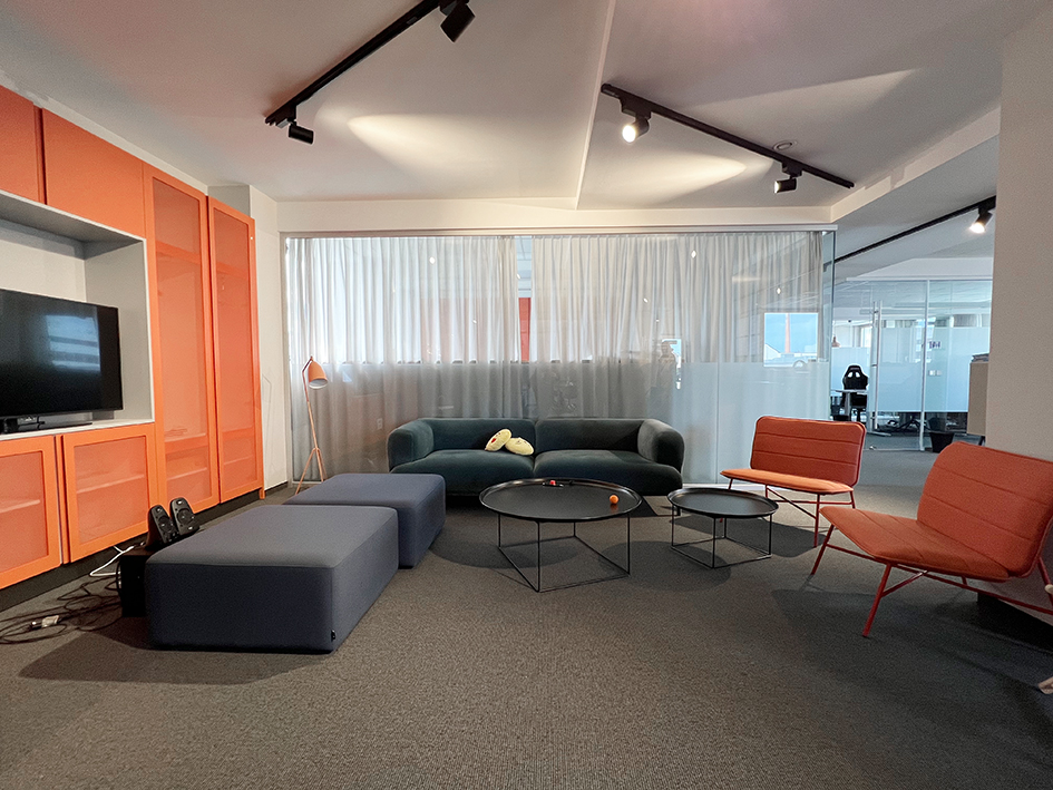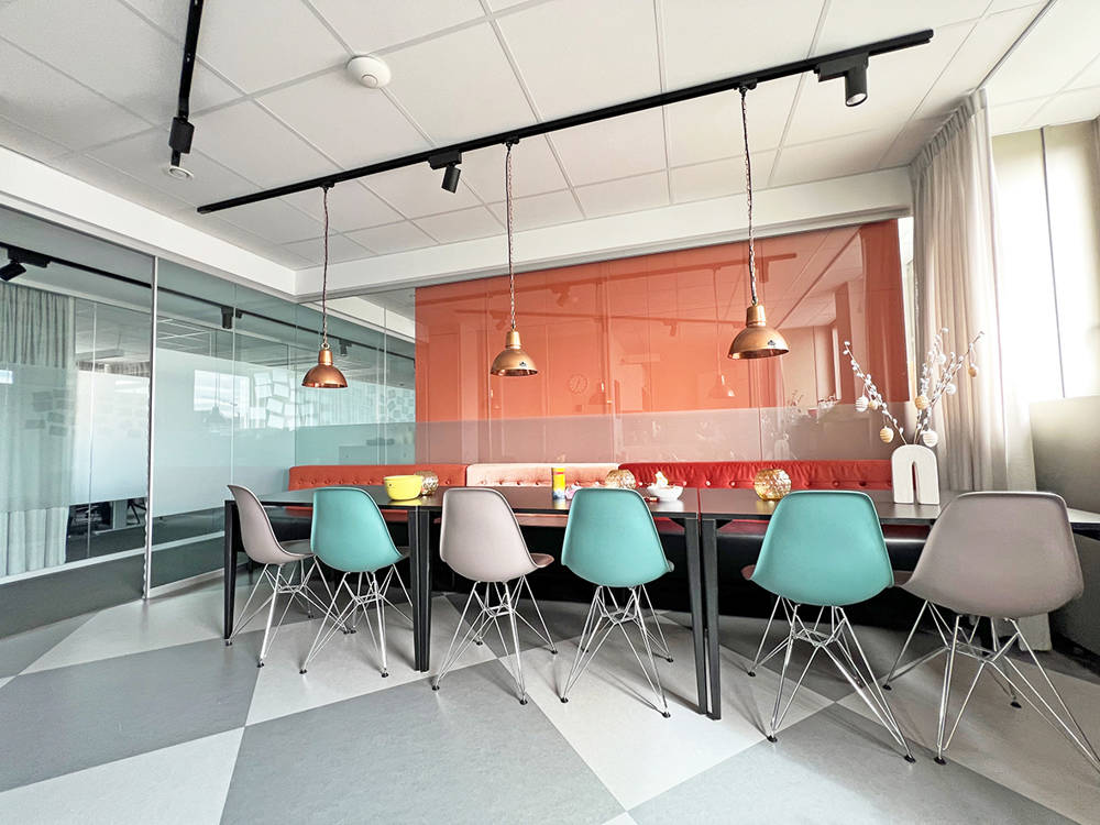 Die schöne Einbauküche mit gemütlichen Sitzecken bietet die perfekte Bedingungen für gemeinsame Mittagessen und entspannte Pausen. Dies fördert nicht nur den Teamgeist, sondern auch den informellen Austausch unter den Mitarbeitern.