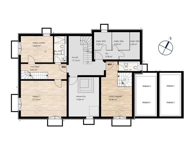 * Untergeschoss mit großzügigen Hobby- und Abstellräumen