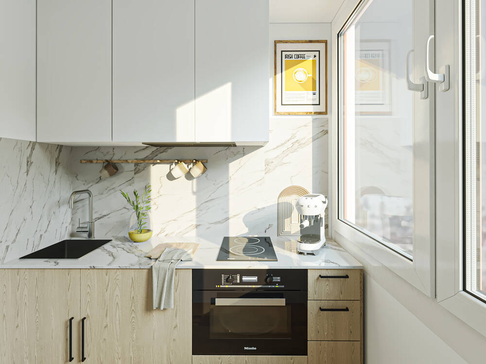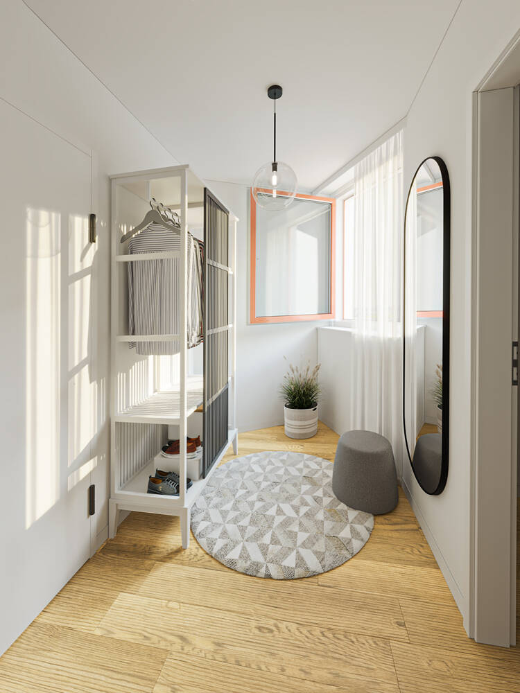 Die Illustrationen zeigen das Apartment nach einer Modernisierung.