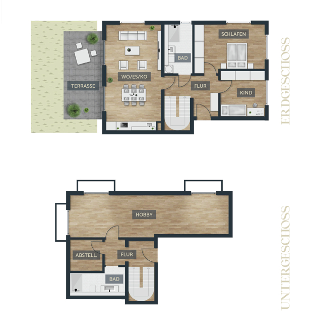 NEUBAU: 3,5-Zimmer-Gartenwohnung mit großem Hobbyraum und Duche in UG