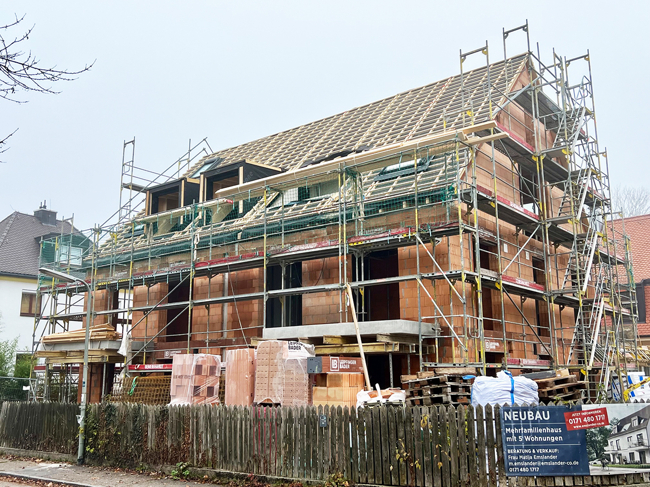 Auf einem sonnigen Eckgrundstück entsteht ein kleines Mehrfamilienhaus mit 5 Wohneinheiten und schönen Freiflächen.
