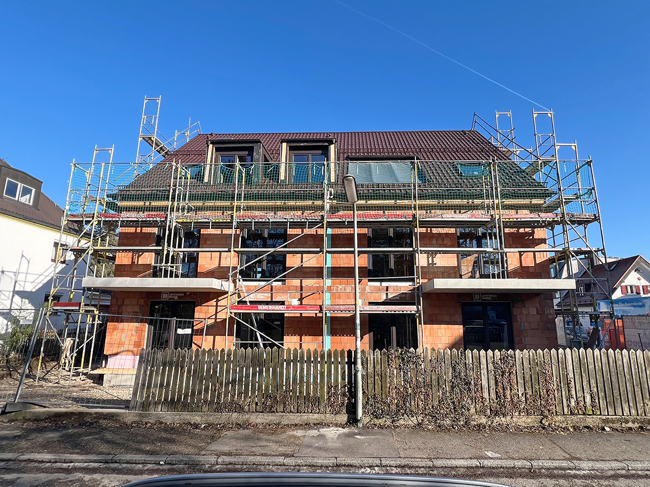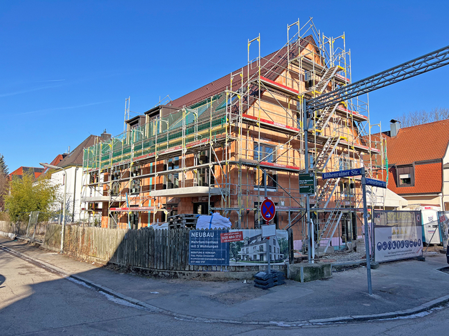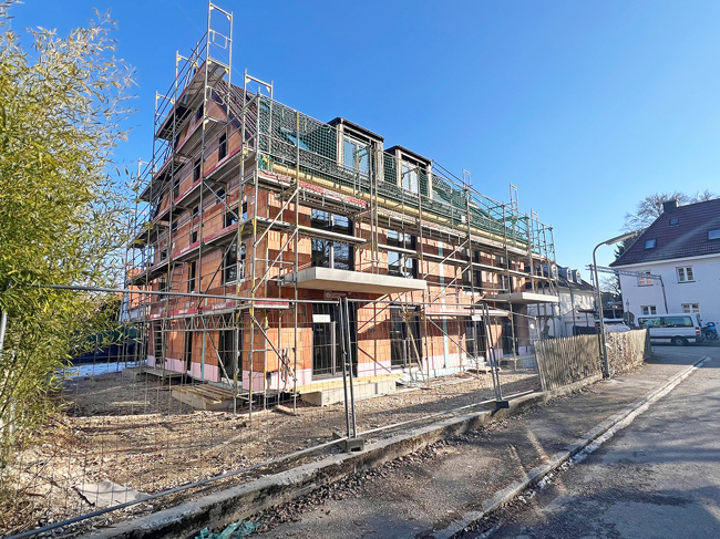 Auf einem sonnigen Eckgrundstück entsteht ein kleines Mehrfamilienhaus mit 5 Wohneinheiten und schönen Freiflächen.