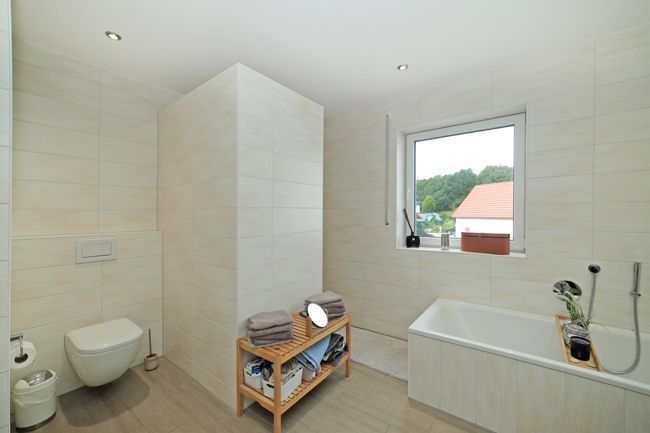 + Großes Tageslichtbad mit Walk-In Dusche und Wanne