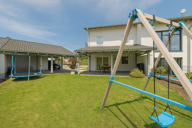 Eine Einzelgarage sowie ein Carport und der schön angelegte Garten runden das Familienhaus perfekt ab.