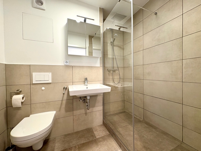 Die frisch renovierte 1-Zimmer Wohnung befindet sich im 3. Stock eines sehr gepflegten Wohnhauses und kann bequem mit dem Fahrstuhl erreicht werden. Das Apartment ist sehr funktional geschnitten. Der Wohn- und Schlafraum sowie Küchenbereich und Flur sind mit einem hochwertigen, neuen Vinylboden ausgestattet. Das Badezimmer ist neu gefliest und verfügt über eine Regendusche.