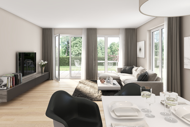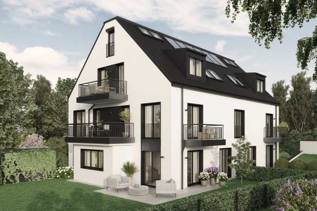 Die 2 bis 3,5 Zimmer Wohnungen verfügen alle über Balkone, Terrassen und im Erdgeschoss über große Privatgärten.