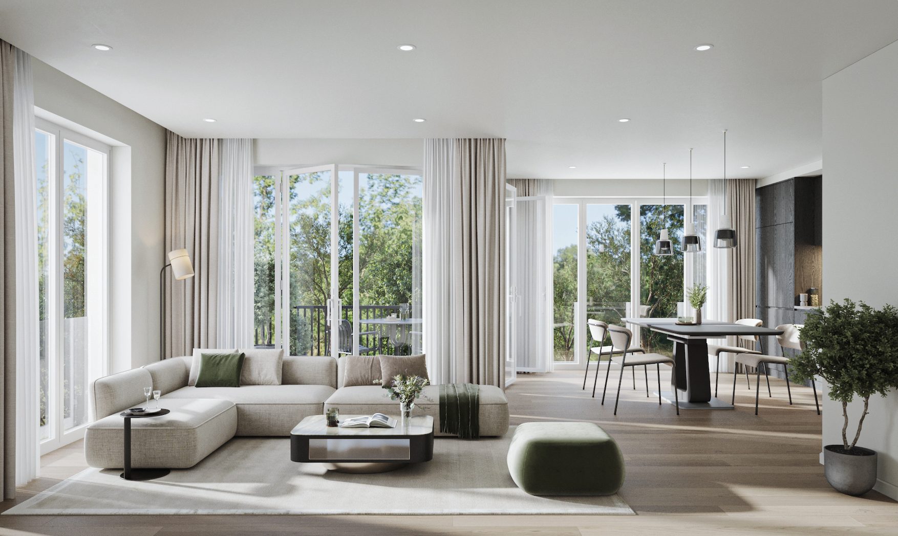 Genießen Sie die Vorzüge eines modernen Wohnambientes, geprägt durch individuelle Grundrisse, raumhohe Fenster und sorgfältig ausgewählte Materialien. Eine einladende Wohlfühlatmosphäre schaffen zudem liebevoll gestaltete Privatgärten, großzügige Balkone und Terrassen – ideale Rückzugsorte für entspannte Momente im Freien.